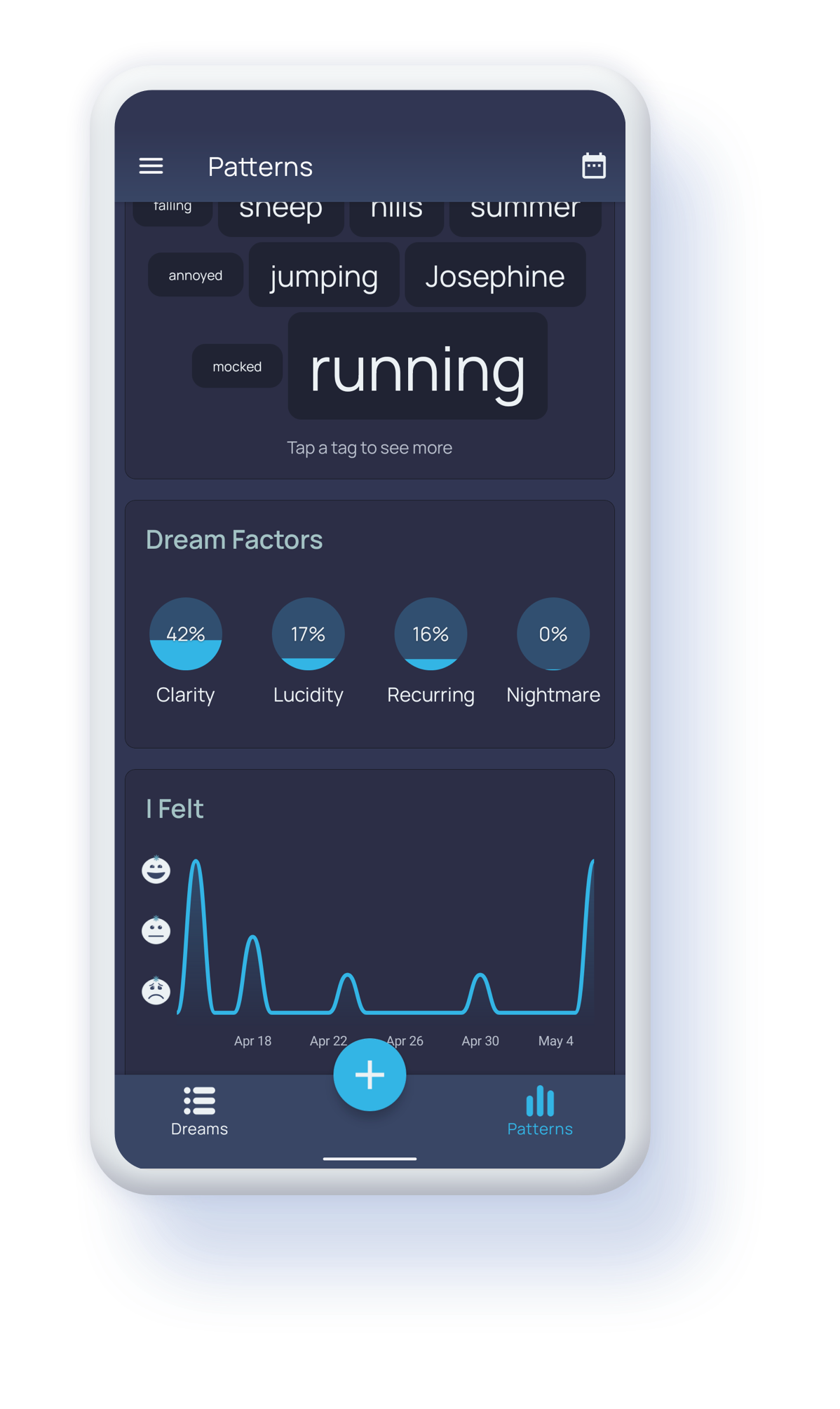 Mark your dreams with tags and find interesting insights about your dreams that are unique to you.