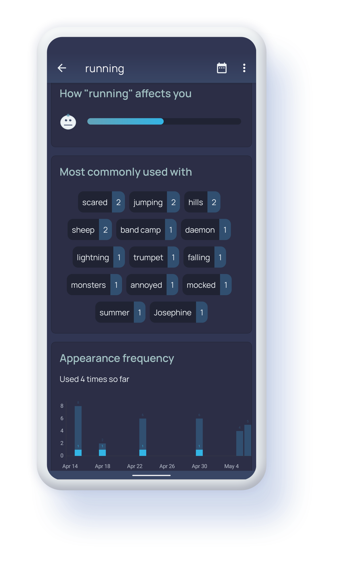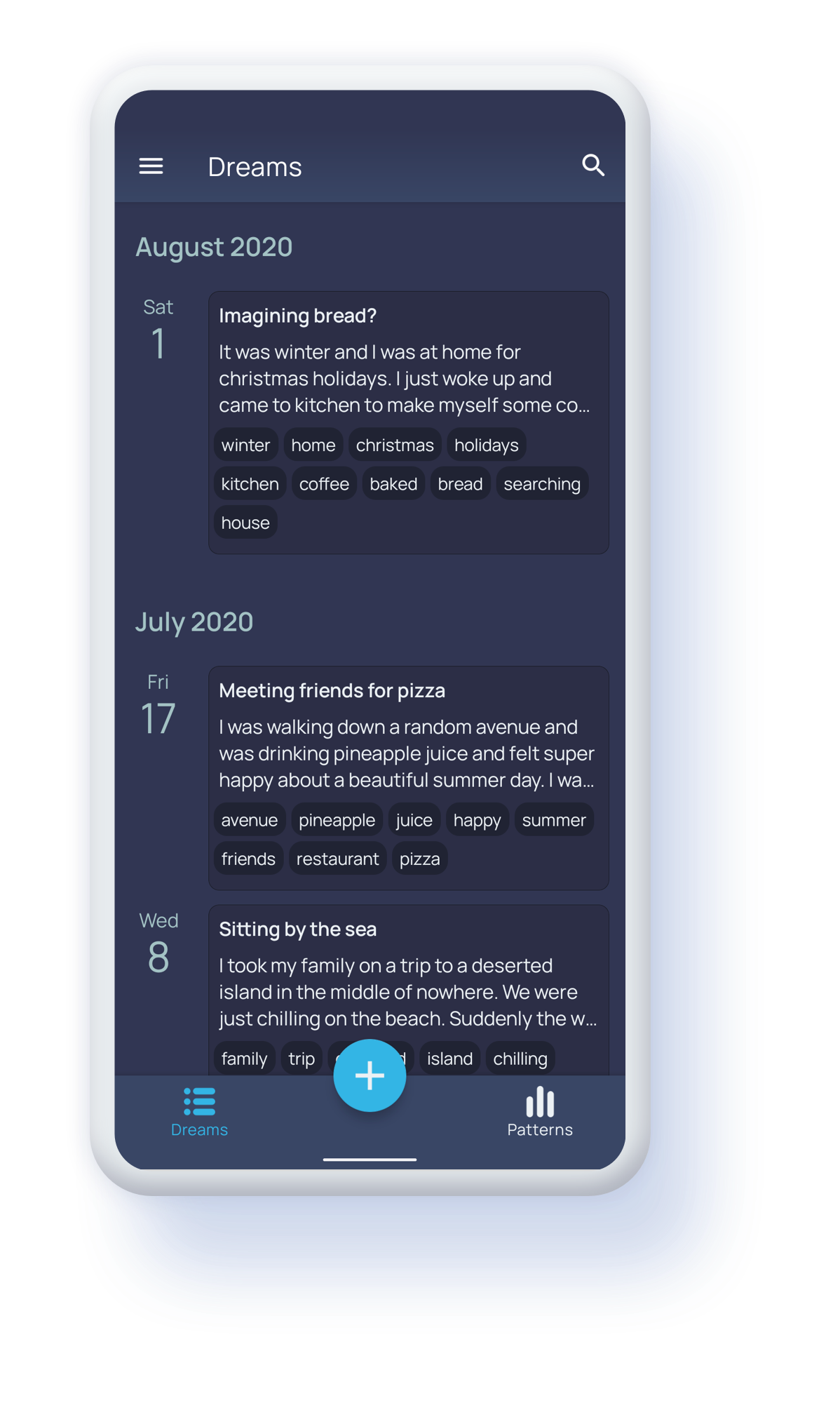 Mark your dreams with tags and find interesting insights about your dreams that are unique to you.
